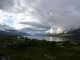 Aursjøen is a lake in Norway on the border between Lesja Municipality in Innlandet county and Molde Municipality in Møre og Romsdal county. The 36.38-square-kilometre (14.05 sq mi) lake sits at an elevation of 856 metres (2,808 ft) above sea level and is about 70.67 kilometres (43.91 mi) around.