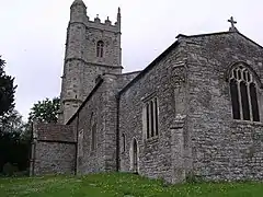 The existing church is dedicated to St John, and is mostly built in the Perpendicular Gothic style. The timber roofs and octagonal stone font date from the 15th century, and the western church tower, with an embattled parapet, was probably rebuilt in the Tudor period. The church contains several 18th-century marble memorial tablets, the earliest dated 1704 to Sir Samuel Astry. The whole church was restored in 1866 by the firm of Pope & Bindon.[11]