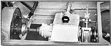 The thin steel-cone clutch engages with the Ferodo lined flywheel. The Ferodo linings are in sections which may be replaced individually. The gearbox is suspended at four points. It is operated by a hand lever controlled by a gate and now has four speeds forward and reverse.[4][7]