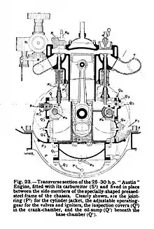 Previous Herbert Austin cars for Wolseley Motors, which Austin founded, kept horizontal engines after vertical engines became the norm. Herbert Austin allowed his refusal to specify vertical engines to become the contract-breaking component of his disagreements with the Wolseley directors. He would provide a list of very pressing reasons for giving preference to horizontal engines. This 25-30, the first car bearing his own name, had a vertical engine. Either Austin reviewed his stance and changed it or his backers made him change.