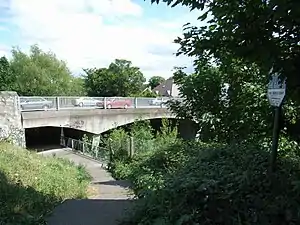 Clarke lived in Bridge House beside Templeogue Bridge which spanned the River Dodder in the south Dublin suburb of Templeogue. After his death, there was a proposal to preserve the house and his library of 6,500 books as a memorial. This was not possible owing to long-term plans to demolish the house and widen the road. The old Templeogue Bridge, built in 1800, and Bridge House were removed and a new bridge was opened by Councillor Mrs. Bernie Malone, Chairman Dublin City Council on 11 December 1984, which was renamed Austin Clarke Bridge in his honour.[3][4]