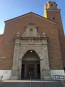 The school was designed by Texas contractor and architect Robert E. McKee.[2] When the local school district ran out of money during the construction, McKee donated the remainder owed.[3] Consequently, the school's football stadium is named in McKee's honor. The R.E. McKee Construction Company built the school and used a classic Spanish architecture.[3] The structure is surmounted by a 103-foot tower. The classrooms had marble floors and the hallways are floored with terrazzo.[3]