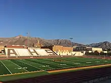 The school, located minutes from the Franklin Mountains, faces a large, white, block "A" letter painted on the mountain. AHS students traditionally "light" the "A" on Homecoming night's football game which is played at R.E. McKee Stadium. The "A" is lit by placing small cans, full of kerosene and sawdust, around the "A" and lighting them before kickoff.[5] The burning "A" is visible from the home bleachers and AHS supporters chant "Hey, Hey, Look at the A" to signify its lighting.[5]