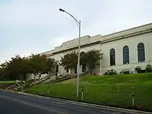 The building opened as the official Austin Public Library in 1933 and served as the main library until 1979,[2] when library functions moved to the John Henry Faulk Library, a newer facility next door. Its site, which overlooks one of four public squares platted in Austin in 1839, was obtained from the Texas Legislature in 1913 for construction of a public library. The Renaissance Revival structure, built in 1933 during the implementation of the 1928 Austin city plan, was designed by local architect J. Roy White,[3] working for the architectural firm of Austin native Hugo Kuehne, founding dean of the University of Texas School of Architecture. The building also contains work by several Austin craftsmen, including ironworker Fortunat Wiegl, wood-carver Peter Mansbendel, and fresco artist Harold "Bubi" Jessen.[2]