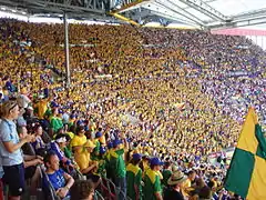 The first match between the two teams was played at the 1956 Olympics, ending in a 2–0 win for the Australians.[3] Another dozen matches were played between Australia and Japan until a semi-final match at the 2001 Confederations Cup which ended in a 1–0 for Japan, but the match-up really only emerged as a rivalry after 2006, when Australia joined the AFC, especially the FIFA World Cup qualification games. The first match between the two sides after this was during the 2006 FIFA World Cup, a group stage game where Australia were still technically competing as Oceania representatives. With just six minutes left, Japan led by a single goal, only for Australia to score thrice in succession to secure their first ever win in a World Cup Finals match in what is regarded as one of the greatest moments in Australian sporting history.[4]