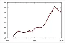 The Australian property market comprises the trade of land and its permanent fixtures located within Australia. The average Australian property price grew 0.5% per year from 1890 to 1990 after inflation,[1] however rose from 1990 to 2017 at a faster rate and may be showing signs of a contracting economic bubble. House prices in Australia receive considerable attention from the media and the Reserve Bank[2] and some commentators have argued that there is an Australian property bubble.