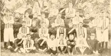 The AFL's 2008 account of the game's history was that it was played in 1898 by a few Australian soldiers on Boer War service behind the lines.[4] It is clear, however, that there is more to the story than this and that the game was most likely played from the late 1880s until competitions were disbanded in 1909. In any case, 1898 appears to have been the first year of regular annual competition between clubs in Transvaal with teams competing for the Elliot shield donated by Mr. E. Elliot.[5]