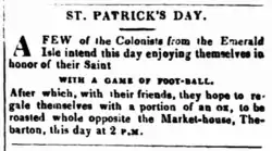 In 1853 a group of Irishmen from Westmeath, Ireland placed an advertisement in the South Australian Register calling for Irishmen from another county of Ireland to join them in Thebarton to play a game of football.[5]