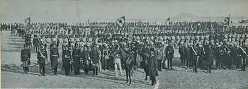 Colonel Adalbert Schönowsky von Schönwies, serving as head of mission, departed with 30 other officers for Tehran on 29 October 1878. On 12 November 1878, the mission arrived in Tarnopol, where it was joined by retired military bandmaster Julius Gebauer, who had purchase instruments in Vienna for a Persian military band. Fourteen mission participants then traveled with 2.4 tons of luggage by train to Odessa, by ship to Poti, again by train to Tbilisi, from there to Baku and finally via the Caspian Sea to Rasht.[2] The mission arrived in Tehran in January 1879. It was accompanied by Albert Joseph Gasteiger Freiherr von Ravenstein und Kobach, who had already served in Persia several years.