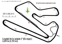 Autódromo Ciudad de Oberá is a motor racing circuit located on the outskirts of the homonymous city, in Misiones Province, Argentina. It is a circuit that popularly receives national-level motorsport categories, possessing two circuit variants, the first (more extensive) is a 4.380 km (2.722 mi) circuit, with an appendix formed by a straight with an extensive curve and a final counter-straight. The main straight and a group of locked corners close the circuit.[1] The second variant is a 2.726 km (1.694 mi) circuit, which dispenses with the appendix formed by the long curve and the final straight, leaving only the main straight and locked corners.[2] In both cases, the direction of rotation is clockwise.