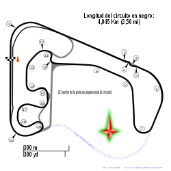 Autódromo Oscar Cabalén is a 4.045 km (2.513 mi) motorsports circuit located in Córdoba, Argentina. It has hosted events in the TC2000 and Formula Renault series. The circuit is named in honour of racing driver, Oscar Cabalén.