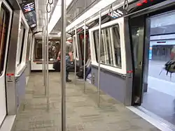 Six more vehicles were added to the system by 1996, an additional five were added in 2001, an additional four in 2007, and an additional 26 in 2021 (16 of which are to replace the original vehicles from the airport’s opening and 10 additional vehicles were added to the system). Today, the fleet consists of 41 automated Bombardier CX-100 vehicles and each of which have a maximum capacity of 100 passengers.[3]