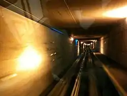 Late in the evening and overnight, the system is reduced to only operating one train. The train will simply shuttle back and forth from end to end in one of the tunnels.[7]