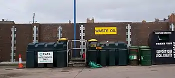 Automotive oil recycling involves the recycling of used oils and the creation of new products from the recycled oils, and includes the recycling of motor oil and hydraulic oil. Oil recycling also benefits the environment:[1] increased opportunities for consumers to recycle oil lessens the likelihood of used oil being dumped on lands and in waterways. For example, one gallon of motor oil dumped into waterways has the potential to pollute one million gallons of water.[2][3]