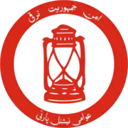 The Awami National Party (ANP; Pashto: عوامي ملي ګوند; Urdu: عوامی نيشنل پارٹی; lit. People's National Party) is a Pashtun nationalist, secular and leftist political party in Pakistan.[4] The party was founded by Abdul Wali Khan in 1986 and its current president is Asfandyar Wali Khan, grandson of Bacha Khan, with Mian Iftikhar Hussain serving as the Secretary-General. Part of the PPP-led cabinet of the Pakistani government during 2008−13, ANP's political position is considered left-wing, advocating for secularism, public sector government, and social egalitarianism.[5]