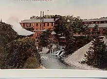 Around 1901, James left the Trust and built a new plant in Yeagertown. Early brand labels used by James H. Mann Co. included the "Juniata Axe" and "Blue Juniata."[21] A fire destroyed the plant in 1911, but it was rebuilt using structural steel. After James died in 1904, his sons operated the plant until 1923, when it was sold to Collins. Reports are that Collins continued to produce axes at Yeagertown until 1927 or possibly as late as 1940.[22] Mann Ave exists today as a reminder of the town's industrial past and at the end of Rosemont Ave sits the William Mann Jr. Mansion.