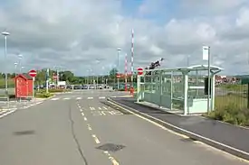 ![]() Aylesbury Vale Parkway station, showing the taxi rank (left), cycle shelter (centre) and booking hall (right) | |