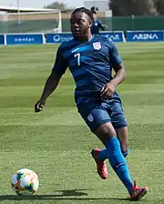 He was called up to the U.S. senior team for their friendly match on December 9, 2020, against El Salvador.[20] He scored a goal in his debut for the Americans against El Salvador, taking a knee and raising a fist in the air following his goal in a show of support for the racial equality movement.[21][22]