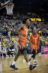 In March 2018, Dosunmu was named one of 26 high school seniors who participated in the Jordan Brand Classic on April 8, 2018, at the Barclays Center in Brooklyn, New York.[3] Dosunmu is the third Illini to be selected to play in the Jordan Classic, joining Dee Brown who played for the Red team in 2002 and Jalen Coleman-Lands who played in 2015.[4] Dosunmu was also selected to play in the second annual Iverson Roundball Classic All-American Game in April 2018 at Souderton Area High School outside of Philadelphia, Pennsylvania.[5] During his senior season, Dosunmu averaged 25.2 points, 7.4 rebounds, 7.3 assists and 2.7 steals, leading Morgan Park to a second-straight IHSA Class 3A championship.[6][7] Dosunmu was also named a Consensus first-team All-State selection by the Associated Press, Chicago Tribune, Chicago Sun-Times, Champaign News-Gazette and Illinois Basketball Coaches Association (IBCA) following his senior season.
