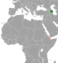 Diplomatic relations between Azerbaijan and Djibouti were established on 22 October 1996.[1] The relations between two countries have been further strengthened after 2016. The Republic of Djibouti fully respects sovereignty and internationally recognized territorial integrity of the Republic of Azerbaijan. In 2017 parliamentary delegation headed by speaker of Djibouti parliament made a trip to Azerbaijan to attend the international forum on intercultural dialogue.[2]