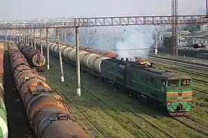 Azerbaijan Railways (Azerbaijani: Azərbaycan Dəmir Yolları) is the national state-owned rail transport operator in the Republic of Azerbaijan. The 2,918 km (1,813 mi), 1,520 mm (4 ft 11+27⁄32 in) gauge network is electrified at 3 kV (3,000 V) DC.[1] The headquarters of the Azerbaijan Railways is in the capital Baku.