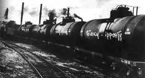 The mechanized German army aimed to secure a large supply of oil. Baku, the capital of Azerbaijan, provided an overwhelming share of Soviet oil production. In an agreement of February 1940 following the August 1939 Molotov–Ribbentrop Pact, Germany and the Soviet Union committed to exchange German machinery, manufactures, and technology for Soviet resources. The Soviet Union thus supplied over 900,000 tons of oil to Germany.[1] This trade arrangement, known to the Allies, fueled Allied propaganda portraying the Soviet Union as a German ally.[2]