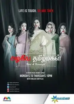Azhagiya Thamizh Magal (Tamil: அழகிய தமிழ் மகள் transl. 'Beautiful Tamil daughter') is a 2016 Singaporean Tamil-language soap opera, starring Vikneswary Se, Bharathi, Narain, Leena, Shamini Gunasagar, Mahalakshmi and among others. It aired on MediaCorp Vasantham every Monday to Thursday at 22:00 starting 26 September 2016 and 9 December 2016.[1][2]