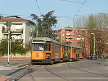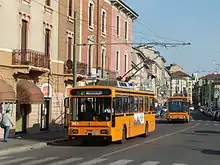 The Azienda Trasporti Milanesi (ATM) is the municipal public transport company of Milan and 46 surrounding metropolitan municipalities.[4] It operates 4 metro lines (see Milan Metro), 18 tram lines (see Trams in Milan), 132 bus lines and 4 trolleybus lines (see Trolleybuses in Milan), carrying about 776 million passengers in 2018.[5]