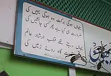 ![]() Couplets of Aziz a-Hasan Ghouri hanging in the khanqah of Thana Bhawan | |