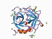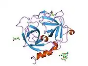 Azurocidin also known as cationic antimicrobial protein CAP37 or heparin-binding protein (HBP) is a protein that in humans is encoded by the AZU1 gene.[3][4]