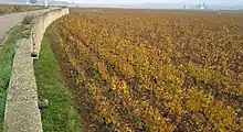Bâtard-Montrachet is an Appellation d'origine contrôlée (AOC) and Grand Cru vineyard for white wine from Chardonnay in the Côte de Beaune subregion of Burgundy. It is located within the communes of Puligny-Montrachet and Chassagne-Montrachet.[1] Bâtard-Montrachet borders on the Grand Cru vineyard Montrachet in the west, on Bienvenues-Bâtard-Montrachet in the east/northeast and on Criots-Bâtard-Montrachet in the south. In terms of the Côte d'Or hillside, Bâtard-Montrachet is located below Montrachet, with the Route des Grands Crus running between the two vineyards. The AOC was created in 1937.