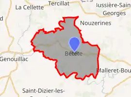 Bétête (French pronunciation: [betɛt]; Occitan: Beteste) is a commune in the Creuse department in the Nouvelle-Aquitaine region in central France.