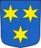The blazon of the municipal coat of arms is Azure, three Mullets [of Six] Or.[6]