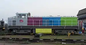 BB 63413 is a demonstration platform built from a BB 63400 shunting locomotive and introduced in April 2009. The 63413 is designed to perform two functions common to the 63400 platform: switching (hump yard) service and urban service (operation within 20–40 km of a freight station).[1][3]