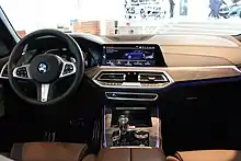 Standard equipment includes LED headlights, electronically controlled dampers, electric and heated sports seats, and two 12.3-inch displays for the instrument panel and iDrive system.[24] G05 X5 models are also available with laser headlights, heated and cooled cupholders, a panoramic sunroof with LED patterns, and a Microsoft Office 365 and Skype for Business subscription with over-the-air updates.[25] A new Digital Key system also enables a smartphone to be used as a keyfob to lock or unlock the car via NFC.[26]