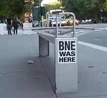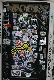 BNE is an anonymous graffiti artist known for stickers that read "BNE" or "BNE was here". He has left his mark in countries throughout the world, including the United States, Canada, Asia, Australia, Europe, and South America.[1] "His accent and knowledge of local artists suggest he is from New York."[2]