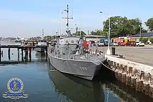 The ships of her class were built to the standards of the United States Coast Guard, with an aluminum hull and superstructure.[1] In addition, a 4-meter (13 ft) rigid inflatable boat powered by a 40-hp outboard motor is stowed amidships.[2] She has a complement of 12. The ship is equipped with a Raytheon AN/SPS-64(V)11 Navigation/Surface Search Radar, but with a smaller antenna as those used in bigger Philippine Navy ships.[2][5] Like all other Philippine Navy ships, the entire class was installed with the Philippine Navy Vessel Tracking System (VTS) by the Naval Sea Systems Command.[6]
