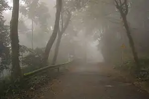 Ba Vì National Park, cloud shrouded forest on way up King High Peak to the Ho Chi Minh Temple
