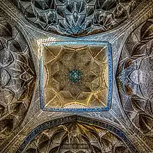 Baba Ghassem mausoleum (Persian: آرامگاه باباقاسم) is a historical mausoleum in Isfahan, Iran. It dates back to the 14th century. It is well known for its beautiful mihrab and dome. It is located to the north of Jameh Mosque of Isfahan. It was repaired and revamped in the Safavid era. Baba Ghassem was one of the prominent faqihs in Isfahan. One of his devotees built the Emamieh school for him, when Baba Ghassem was alive and after Baba Ghassem's death, he built this mausoleum for him. The tomb has brick and tile decorations. Its dome is pyramidical. This mausoleum was very respected in the past, so much so that people generally swore to it beside the tomb for proving that they are telling the truth. On the lower part of the dome of the structure, one of the names of Allah has been written in the Bannai script.[1]