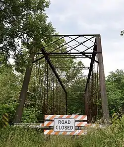The Babylon Bend Bridge is one of nine metal highway bridges in Fulton County, Illinois listed on the National Register of Historic Places and still standing. This bridge was built in 1890 over the Spoon River[2] and is located along Illinois Route 123 near Ellisville. It was added to the National Register of Historic Places on October 29, 1980, along with the eight other bridges, as one of the "Metal Highway Bridges of Fulton County.[1] Some of the other bridges included the now demolished Duncan Mills Bridge in Lewistown and the Indian Ford Bridge in London Mills, Illinois. In total, six of the nine bridges have been destroyed.[3]