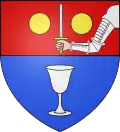 These are the Arms of the chapter of the cathedral at Metz who owned the lordship, together with a stemmed glass symbolising the crystal glass industry.