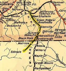 The railroad was chartered by the state of Pennsylvania and separately in Maryland, in 1871.[1] At Valley Junction it connected with the Hanover Branch Railroad. At Ebbvale the line terminated at an iron ore mine. [2][3] The railroad began operation in early 1873. The rolling stock was provided by the Hanover Junction, Hanover and Gettysburg Railroad, which operated the railroad.