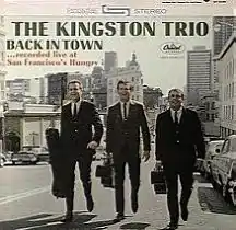 Back in Town is a live album by the American folk music group the Kingston Trio, released in 1964 (see 1964 in music). It reached number 22 on the Billboard Pop Albums chart and is the final principal album recorded by the Trio for Capitol Records. The Trio's seven-year contract with Capitol ended in February 1964 with one album due. Unable to negotiate another contract, the group released this live album and moved to Decca Records.[1]