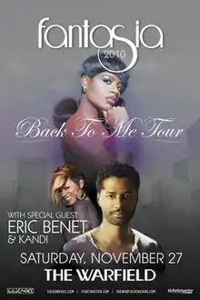The Back to Me Tour was the first headlining concert tour by American recording artist Fantasia Barrino. Primarily visiting the United States, the tour supported her third studio album, Back to Me.