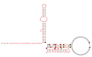 Two B. thetaiotaomicron sRNAs that have been functionally characterized are RteR and GibS. RteR is a 78 nucleotide (nt) long sRNA that is conserved in closely related species and likely serves as a repressor of a transposon operon.[3][4] Analyses based on secondary structure conservation, taking into consideration nucleotide covariation and in-vitro chemical probing have revealed a structure that consists of a 5’ hairpin and a Rho-independent terminator that are separated by an 8 nt sequence.[3][1] GibS is a 145 nt long sRNA that is also conserved in several closely related species within phylum Bacteroidota and has been hypothesized to play a role in carbon metabolism.[1] Structural analyses have revealed this sRNA to possess an extended 5’ single stranded region (38 nt) followed by two meta-stable hairpins and a Rho-independent terminator at the 3’ end. It is maximally expressed when B. thetaiotaomicron is grown in N-acetyl-D-glucosamine as the sole carbon source and has been shown to both induce and repress target mRNAs involved in metabolic regulation.[1]