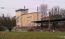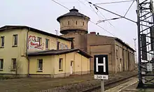 ![]() Entrance and service buildings, rear engine shed with water tower (in 2012; everything was demolished in 2017) | ||||||||||||||||||||||||||||||||||||||||||||||