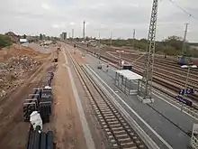 The track infrastructure (ballast bed and sleepers) at the station was renovated between 2011 and 2013. Since then, the station can be passed at 100 km/h. Work on the reconstruction of the station facilities began in autumn 2016. Barrier-free access and the construction of new platforms were planned. The station building, the engine shed and the other isolated buildings were completely demolished from January to March 2017.[4][5][6] The demolition of the historic station ensemble disturbed the public.[7] The renovations were completed in December 2018.[8]