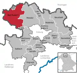 listen)) is a town in the district of Coburg, in Upper Franconia, a north Bavarian Regierungsbezirk, Germany. It is situated 10 km southeast of Hildburghausen, and 17 km northwest of Coburg. Since 1999 the city has been a spa-resort and is reported to have the warmest thermal spring in the North of Bavaria.