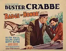 Badge of Honor is a 1934 American drama film directed by Spencer Gordon Bennet and starring Buster Crabbe, Ruth Hall and Betty Blythe. It was produced on Poverty Row as a second feature for distribution by Mayfair Pictures.[1] Crabbe was loaned out from Paramount Pictures for the production. The film's sets were designed by the art director Paul Palmentola.