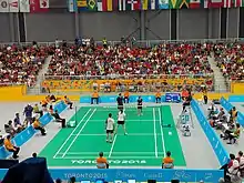 Badminton competitions at the 2015 Pan American Games in Toronto were held from July 11 to 16 at the Markham Pan Am Centre (Atos Markham Pan Am Centre) in Markham.[1] Due to naming rights the arena was known as the latter for the duration of the games.[2] A total of five badminton events will be held: two each for men and women, along with a mixed doubles event.[3]